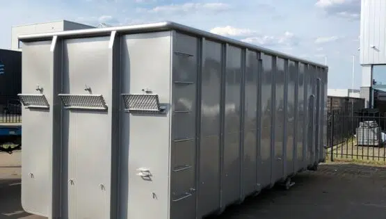 Voor een bedrijf uit de omgeving van Kelpen hebben wij een container gestraald en gespoten in RAL 9007. Deze container wordt gebruikt voor het vervoer van slib, dus werd de binnenzijde ook behandeld.